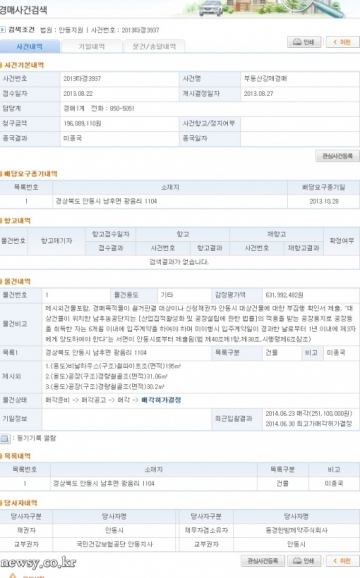 안동시는 남후농공단지내 D회사의 밀린 토지사용료를 받지 위해 지난 2012년 말,1억9천6백여만 원 청구소송에서 승소해 경매를 신청했지만 경매에 공장만 붙여지고 토지 소유권은 안동시에 있는 등 권리관계가 복잡하여 3번이나 경매가 유찰되었다.
